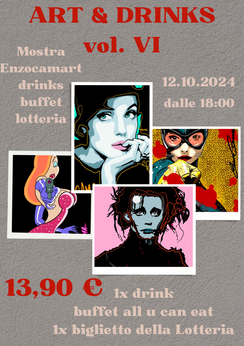 Non vediamo l'ora di farti vedere nuovi quadri di enzocamart , accompagnati da un ottimo buffet e LOTTERIA alla fine della serata โจ๏ธ
